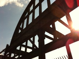From the GROUND Up shows another structure with deep character. Notice the multiple phases of lettering that have been put up, built in, worn in, and removed over time, whose ghosts are rusted over but still visible.