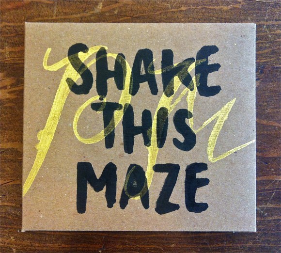 The making of the album artwork was a handcrafted process involving 6 stages and multiple mediums. We started by ordering 50 blank recycled chipboard album covers and some CD sleeves from the good folks over at Stumptown Printers, and Shake This Maze was soon on its way…